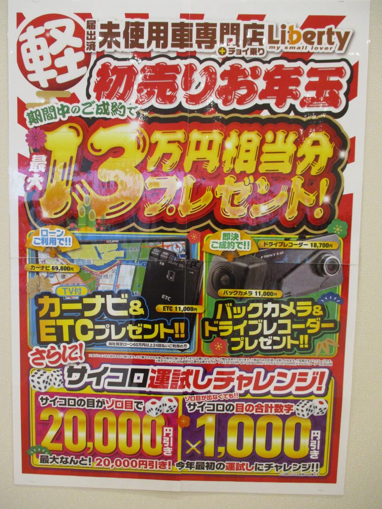リバティでは、元日から初売りフェアを開催しており、多くのお客様にご来店して頂きました。本当にありがとうございます!!