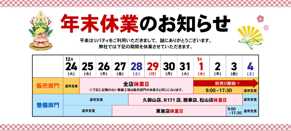 栗東店 2024年12月26日(木)‐ 2025年1月1日(水)