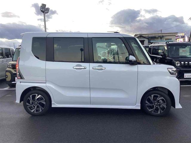 タントファンクロスは、アクティブなスタイルと多目的の使い勝手を融合した軽自動車です。タントシリーズ伝統の「ミラクルオープンドア」を採用しており、大きな荷物の出し入れがしやすくなっています。