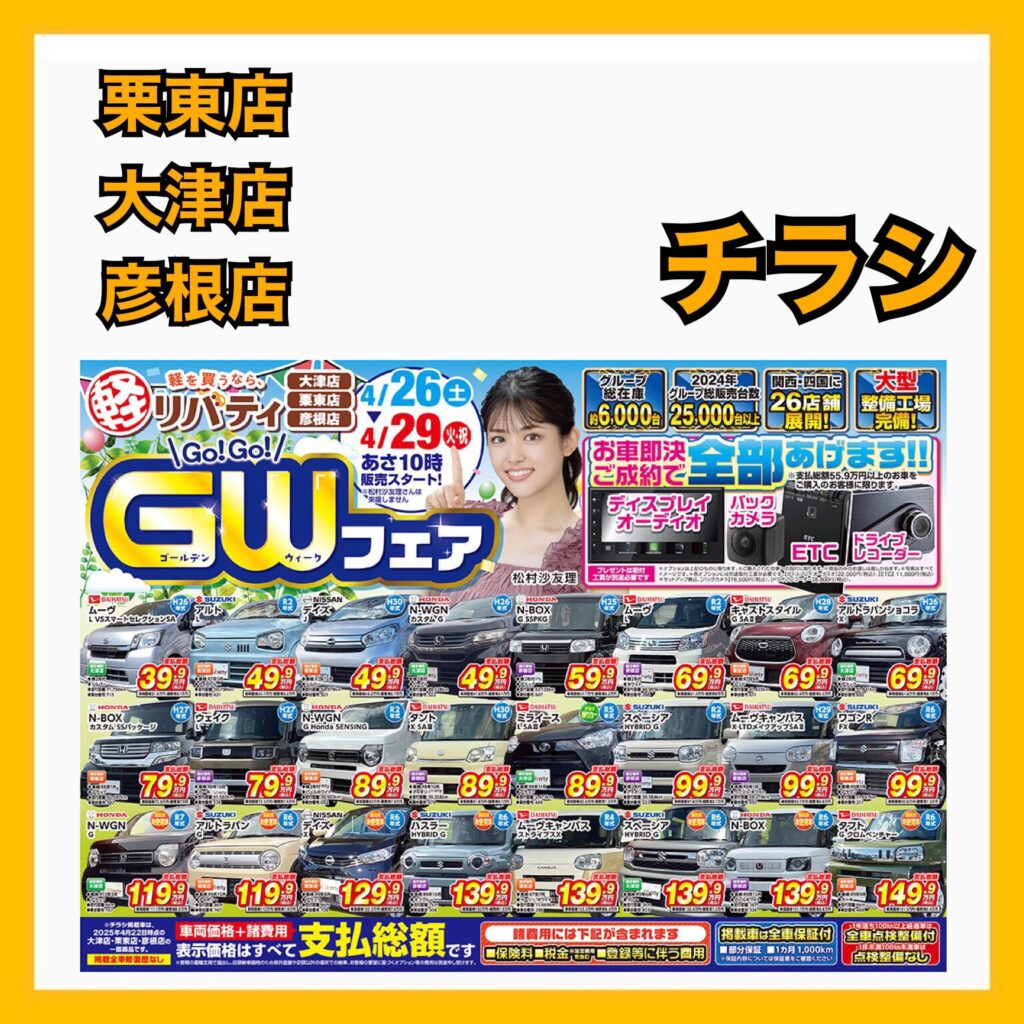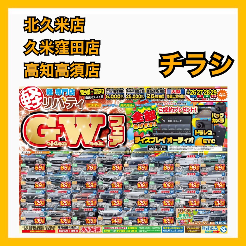 さらに26日(土)~4/29(火)からは一部店舗でゴールデンウィークフェアを開催!!