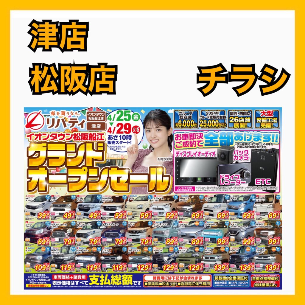 4/25(金)~4/29(火)までイオンタウン松阪船江店グランドオープンセールを開催いたします!