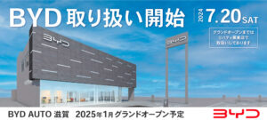 株式会社リバティが運営するBYD AUTO滋賀では、7/1~8/31の期間で三井アウトレットパーク 滋賀竜王にてBYD車 …