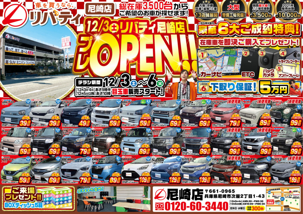 「リバティ久御山本店」「リバティR171店」は普通車も展示する「総合自動車販売店」となります。