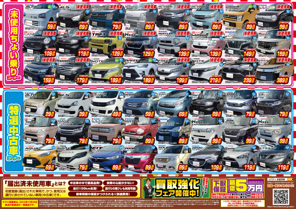 リバティ津店はなんと!目玉車が9.9万円からご用意しております!