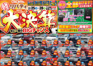在庫を豊富に取りそろえていますので、探しているお車が見つかるはずです!リバティはお客様の安心と信頼に応えるサービスをご提供いたします。そして、大型店ならではの強みを活かし在庫も豊富、低価格で販売しております。購入後のメンテナンス、故障、車検などアフターサービスも充実しているので安心して車に乗り続けることができます。是非ご来店ください♪