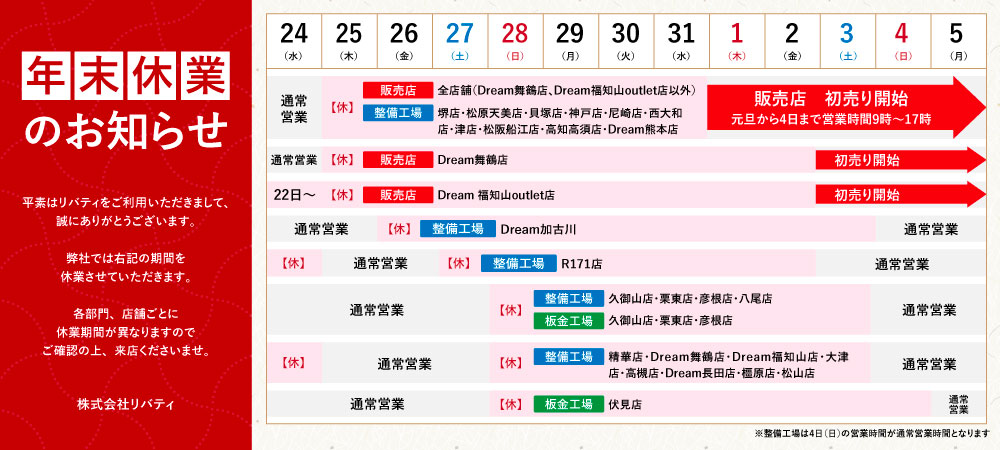 リバティは購入後のアフターサポート体制も充実していますので、車のお困りごとはお気軽にご相談ください。