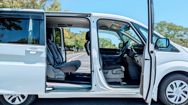 ドアが横にスライドして開くため、狭い駐車場でもドアを大きく開ける必要がなく、乗り降りがしやすいのが大きな特徴です。
