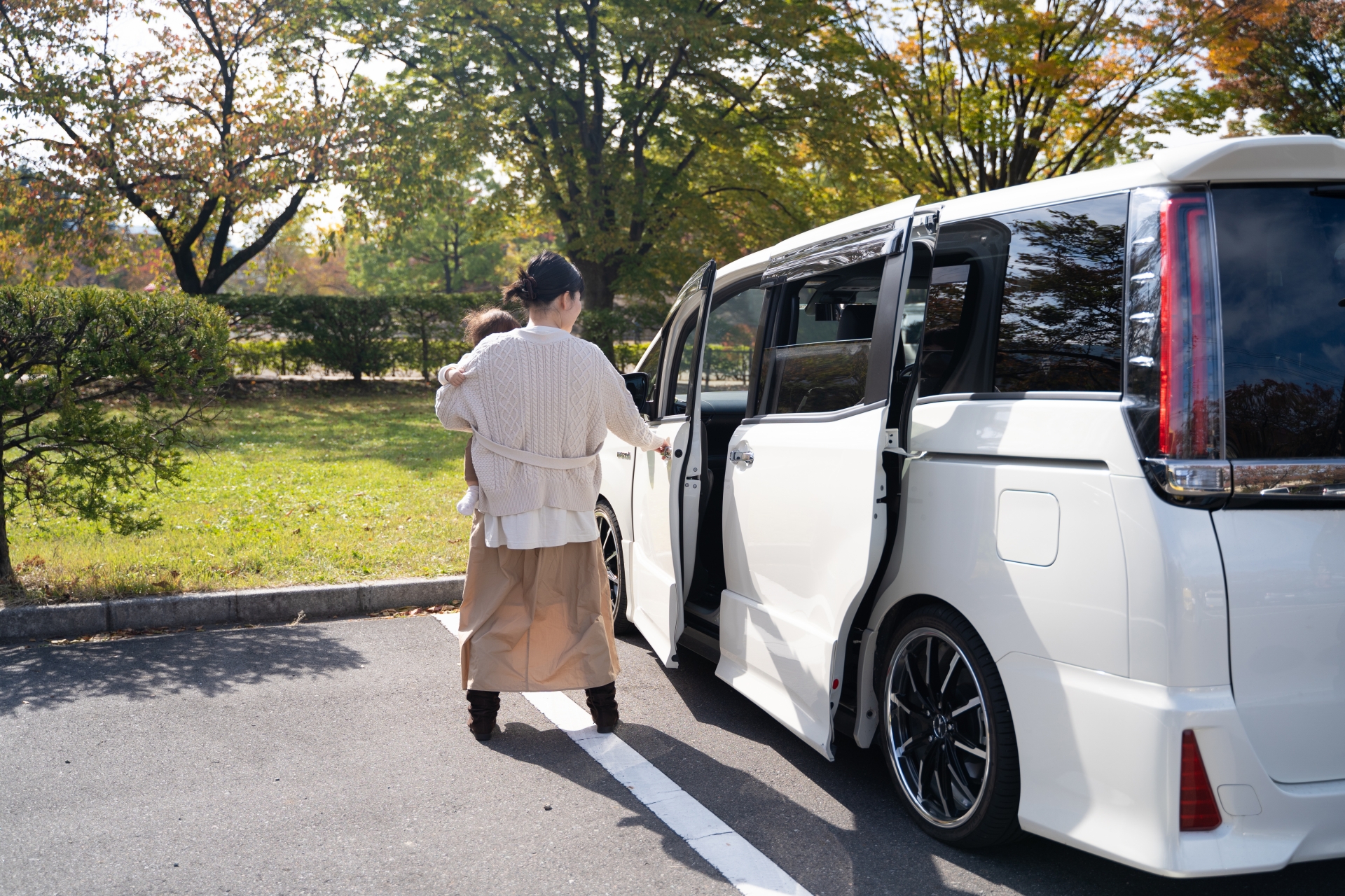 その点、スライドドアは横にスライドして開くため、狭い駐車場でもドアを大きく開けることができるのが大きなメリットです。