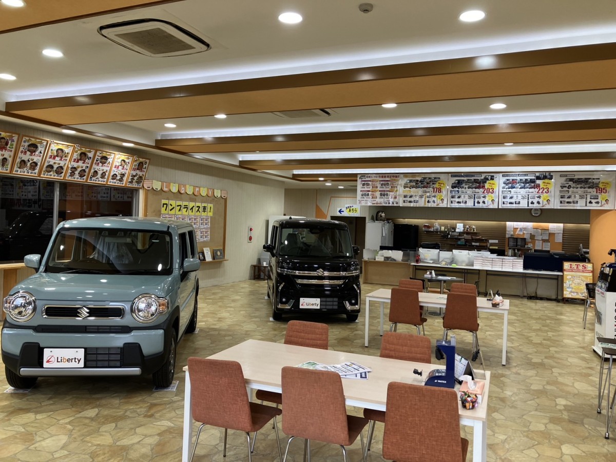 滋賀県栗東市にあるリバティ栗東店は、軽自動車から普通車まで、約400台の豊富な在庫を誇る大型自動車販売店です。